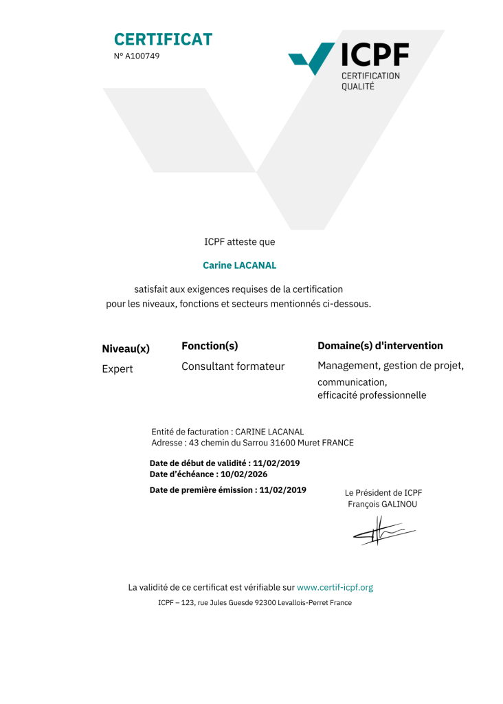 Carine Lacanal, votre formatrice expert ICPF Coach certifiée RNCP